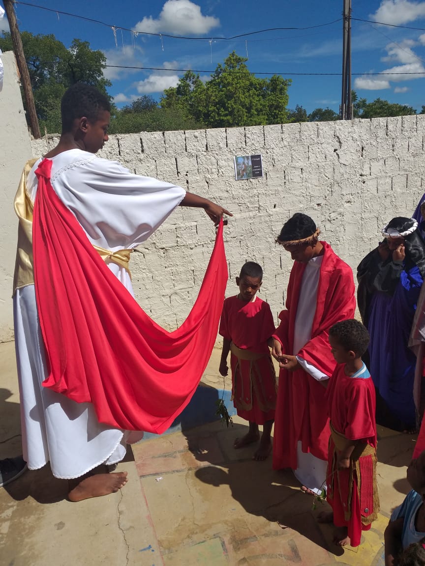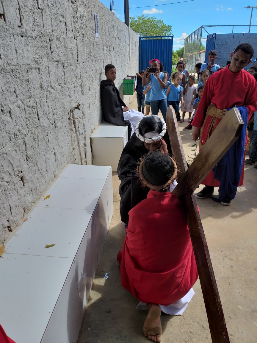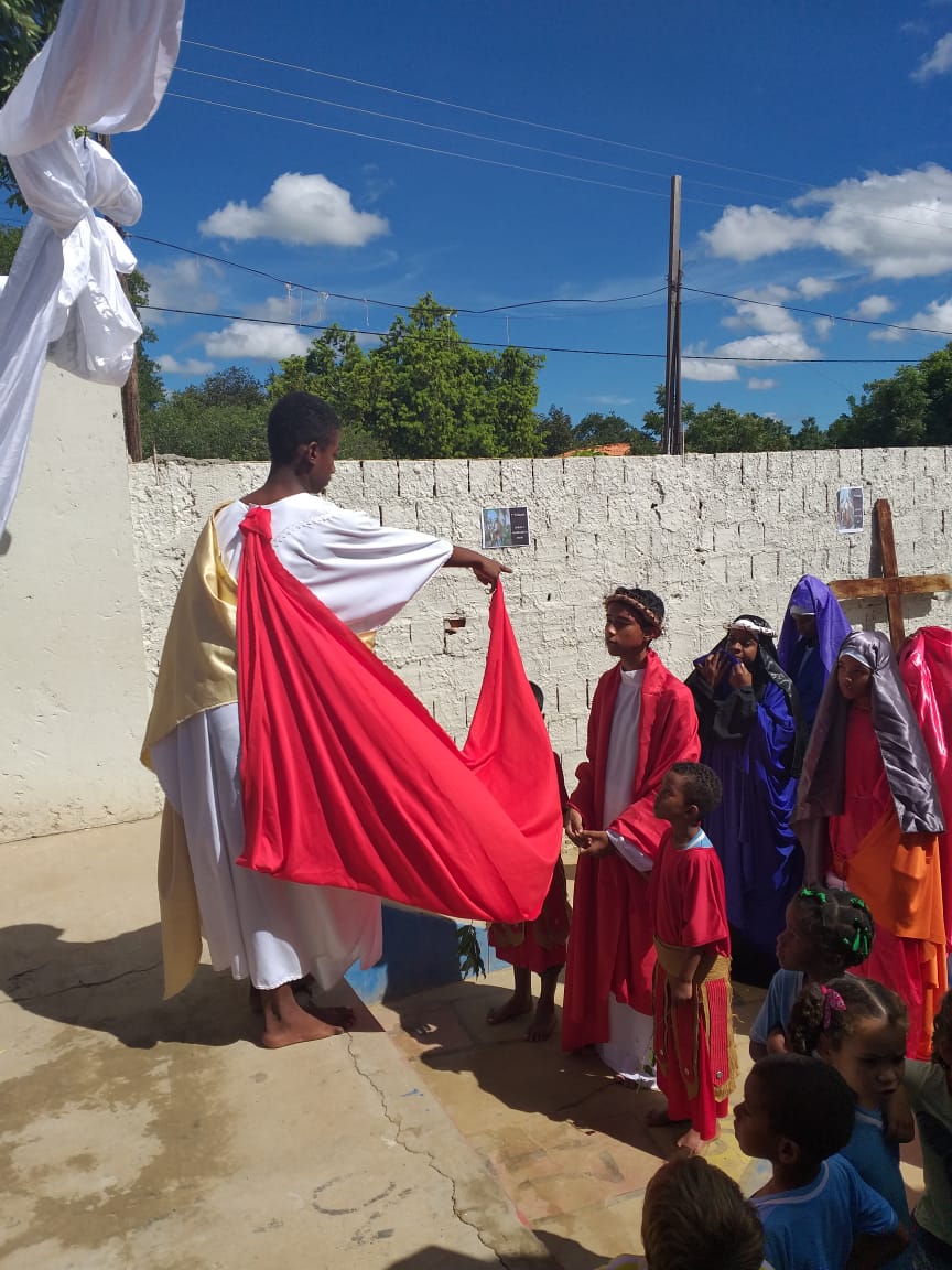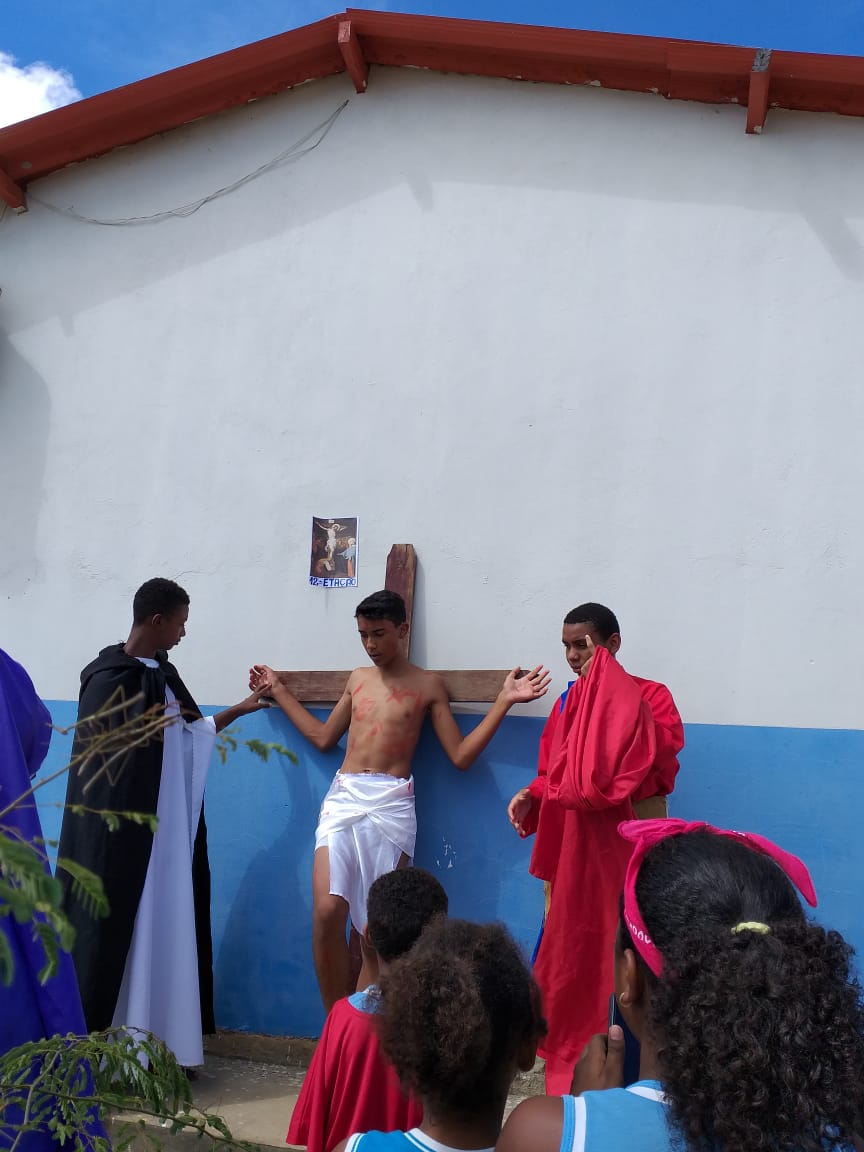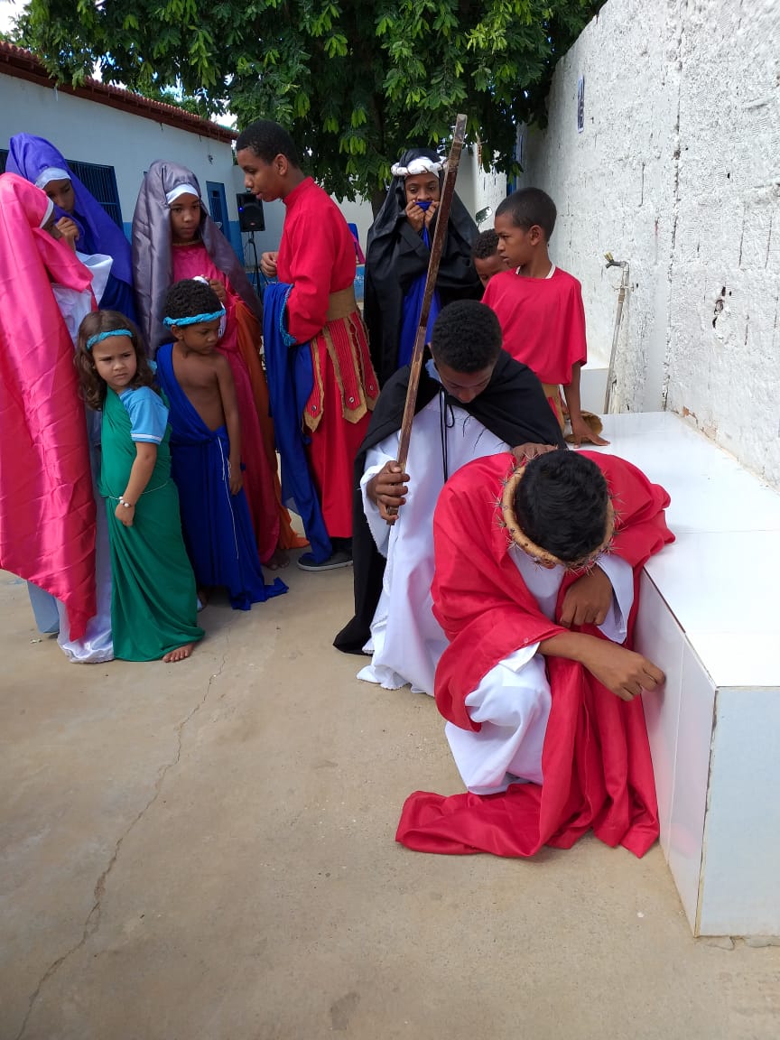 Durante os dias 15 e 16 de abril, estudantes da Escola Municipal Bartolomeu Guedes, Colaboradores do PJ’Artes de Bom Jesus da Lapa e alunos da mesma participam da Semana Santa Infanto Juvenil na EMBG. Durante dois dias vivenciaram a paixão, morte e ressurreição de Jesus Cristo. Esses momentos os fazem refletir sobre o significado da Páscoa.
