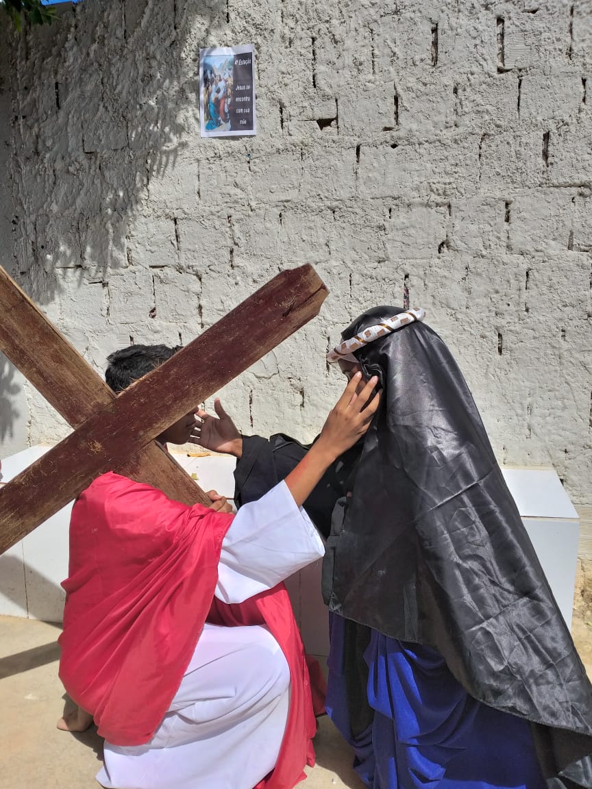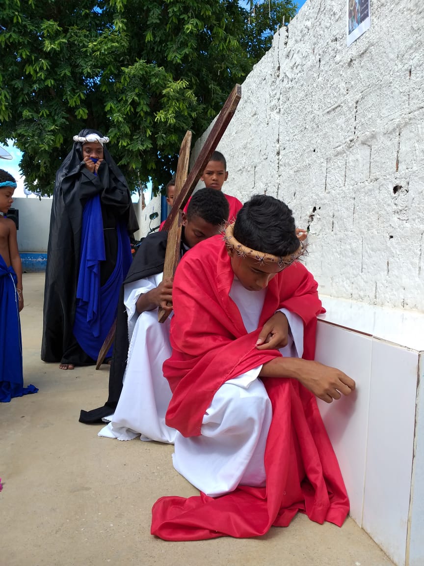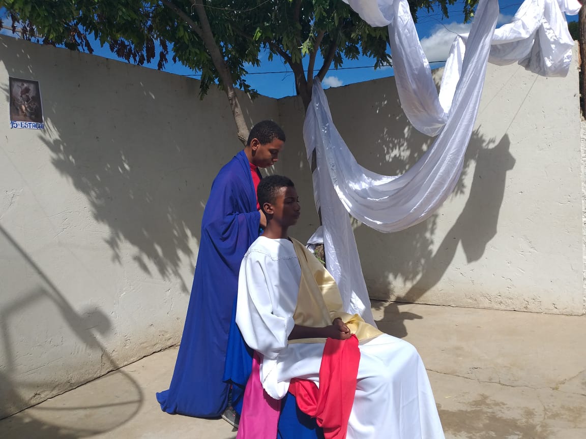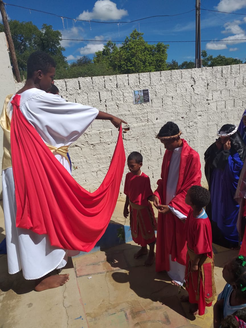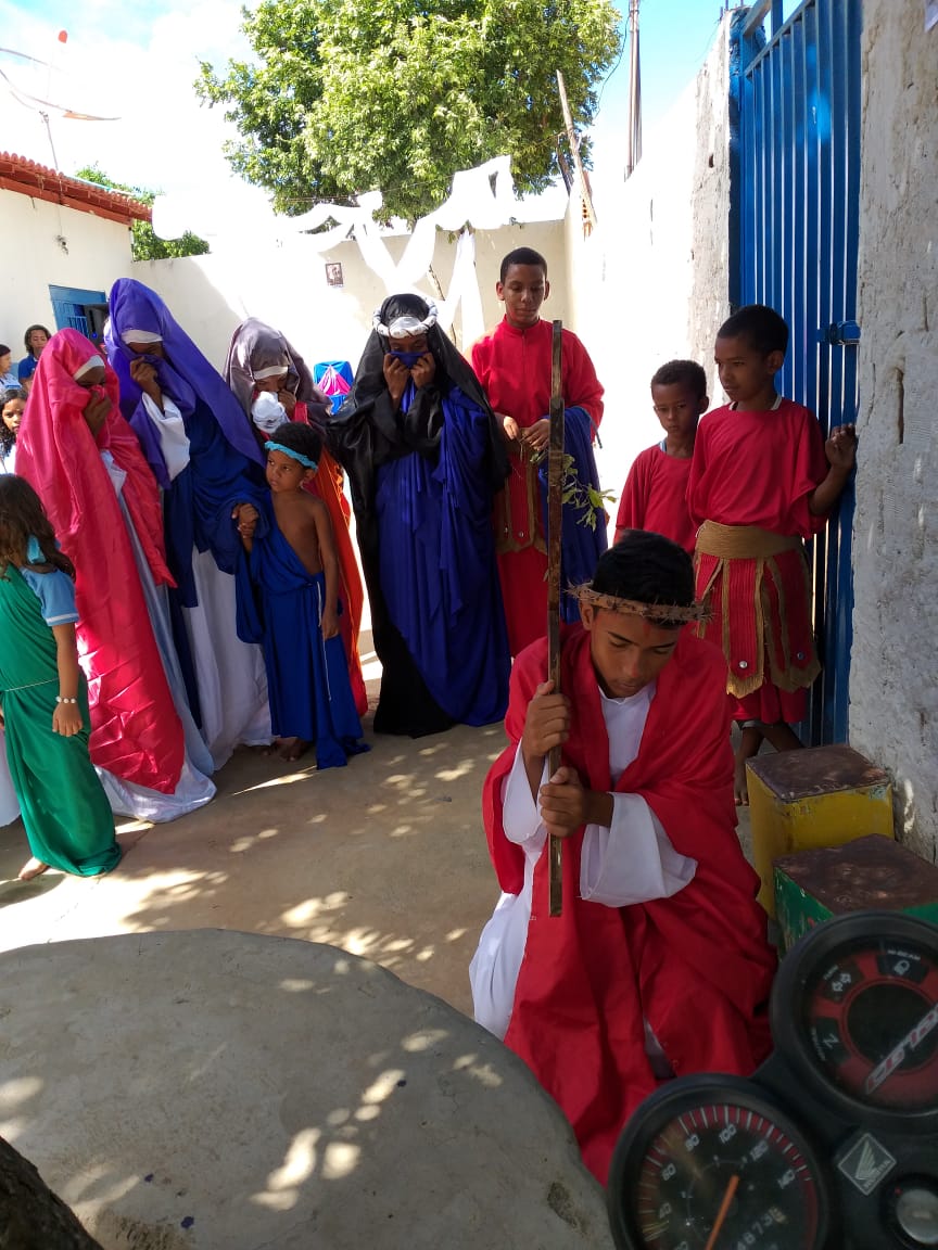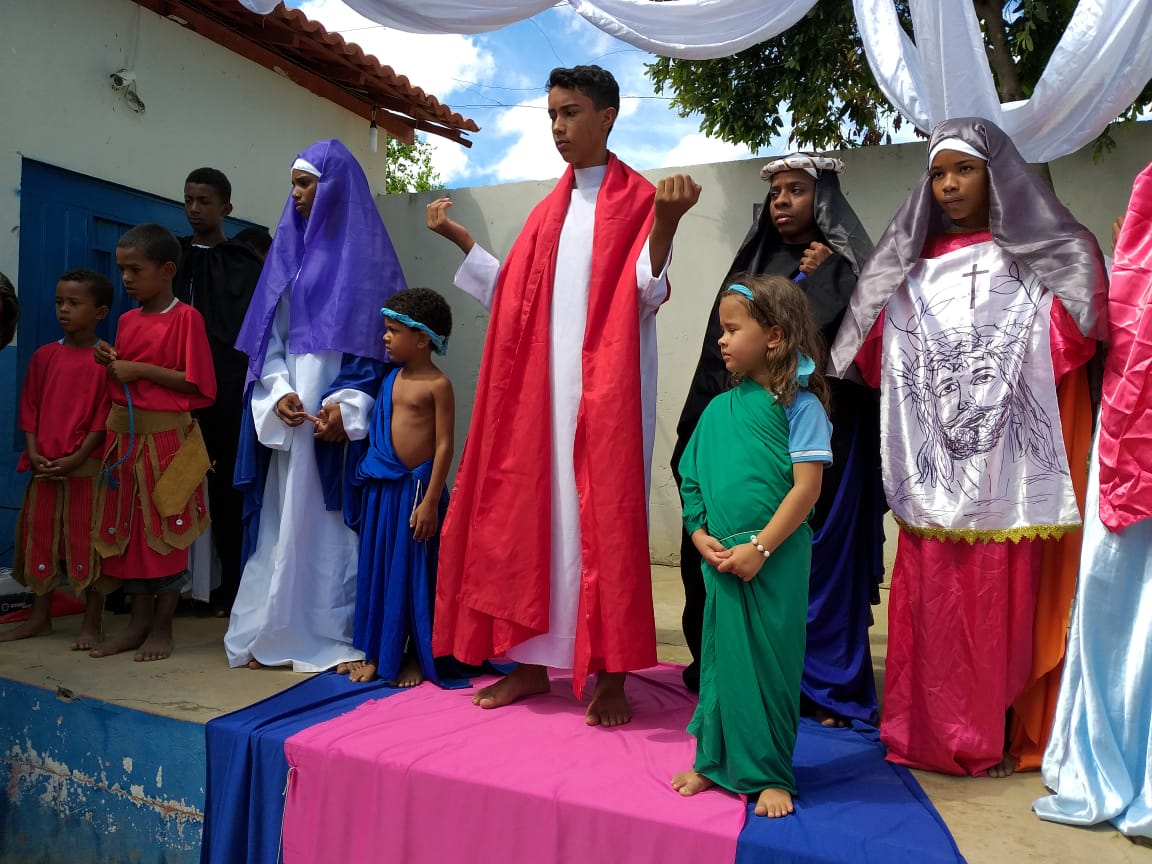 Durante os dias 15 e 16 de abril, estudantes da Escola Municipal Bartolomeu Guedes, Colaboradores do PJ’Artes de Bom Jesus da Lapa e alunos da mesma participam da Semana Santa Infanto Juvenil na EMBG. Durante dois dias vivenciaram a paixão, morte e ressurreição de Jesus Cristo. Esses momentos os fazem refletir sobre o significado da Páscoa.